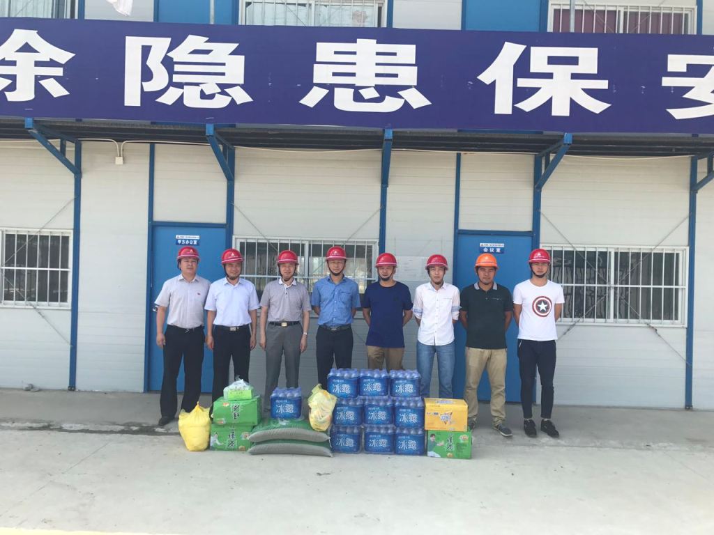 胡書記一行認(rèn)真聽取了項(xiàng)目部施工現(xiàn)場情況詳細(xì)介紹,了解施工進(jìn)度和下一步施工計(jì)劃,仔細(xì)詢問了現(xiàn)場防暑降溫工作的落實(shí)情況,對在炎熱天氣下工作的員工表示親切的問候,要求項(xiàng)目部合理安排好作息時(shí)間,避開高溫時(shí)的作業(yè),并把綠豆、白糖、毛巾、礦泉水、風(fēng)油精、人丹、十滴水等防暑降溫用品送到大家手中,叮囑大家一定要做好防暑降溫工作,在施工現(xiàn)場多配備防暑降溫飲品及藥品,采取各種有效措施,確保員工的身體健康和施工安全。
