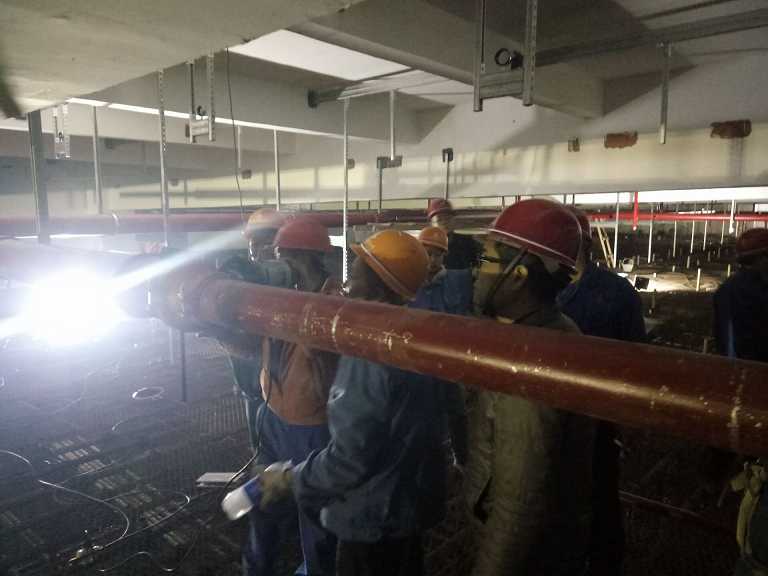 11月28日下午,公司副總經(jīng)理劉安俊一行蒞臨安徽中煙工業(yè)蚌埠卷煙廠易地搬遷項(xiàng)目部檢查指導(dǎo)工作。他首先檢查了項(xiàng)目部管理人員在崗情況,隨后不辭辛苦深入施工現(xiàn)場,來到每一個(gè)施工班組,每一個(gè)施工點(diǎn)檢查指導(dǎo)。特別是在高架庫屋面板消防噴淋施工點(diǎn),滿堂腳手架,空間施工高度21米,劉安俊親自登上最高處施工平臺(tái)進(jìn)行指導(dǎo)。項(xiàng)目執(zhí)行經(jīng)理郭洋等陪同檢查并就現(xiàn)場項(xiàng)目的管理工作及存在的困難做了匯報(bào)。