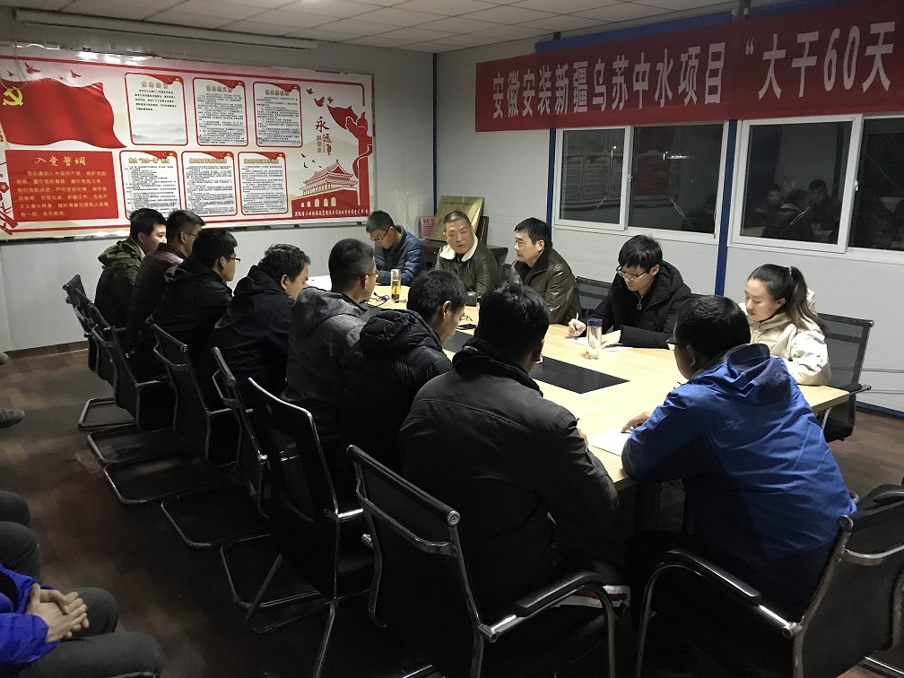 為激發(fā)廣大員工的工作熱情,確保年度各項目標(biāo)任務(wù)順利完成。安徽安裝新疆烏蘇中水回用項目部從2018年11月1日—12月31日開展“大干60天”勞動競賽活動。11月6日晚,公司紀(jì)委書記、工會主席李寬旭,項目部全體管理人員和10個施工班組長共30多人參加了“大干60天”勞動競賽動員會。