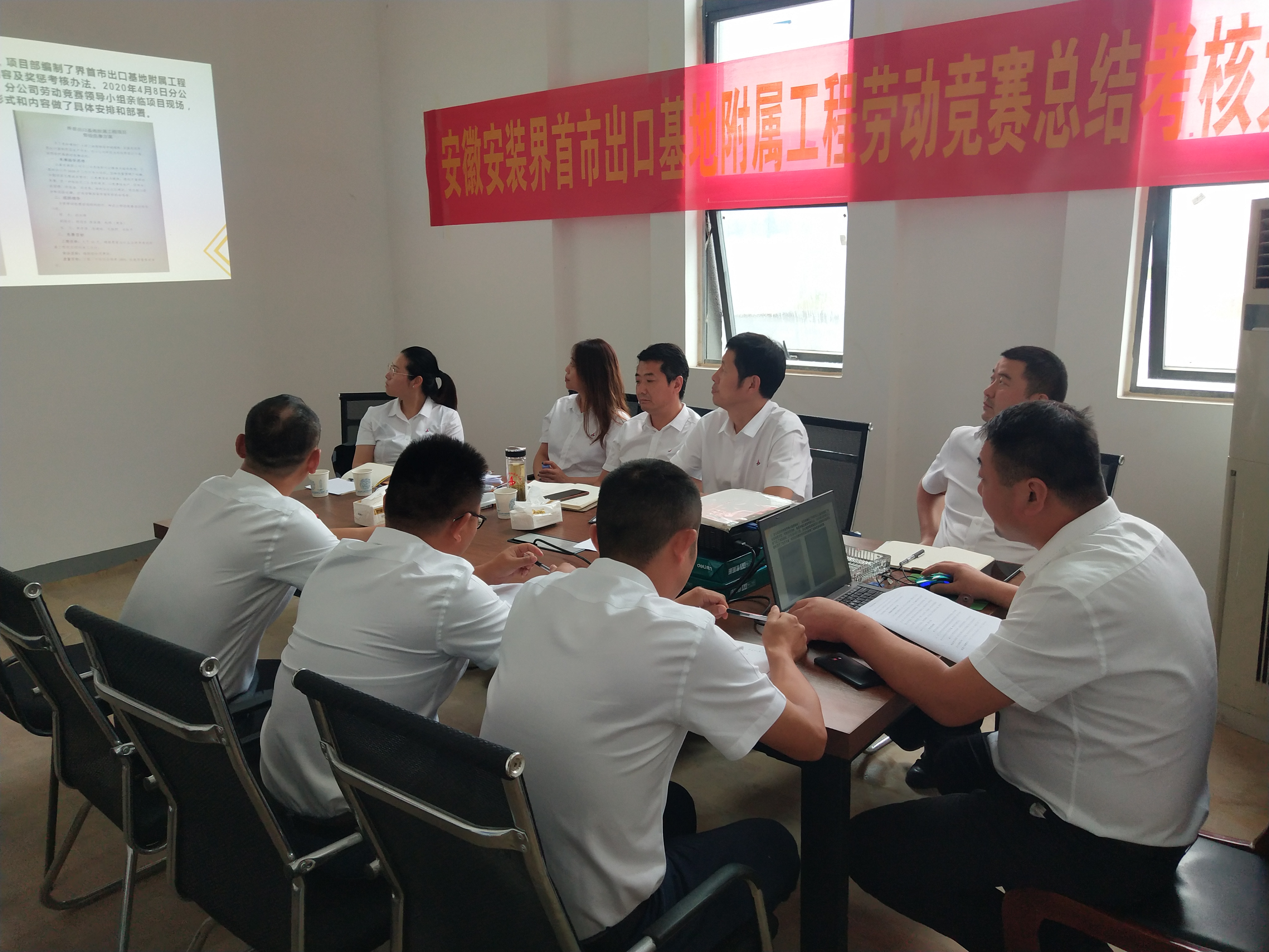 7月24日,合肥分公司勞動競賽考核組一行赴該項目部進(jìn)行實地考核。項目經(jīng)理楊賢樂匯報了勞動競賽開展過程、疫情防控措施、項目完成情況以及取得成績與存在的問題,項目管理人員就勞動紀(jì)律、專業(yè)知識、工作效率、計劃能力、溝通協(xié)調(diào)、檢查指導(dǎo)等內(nèi)容進(jìn)行了匯報。