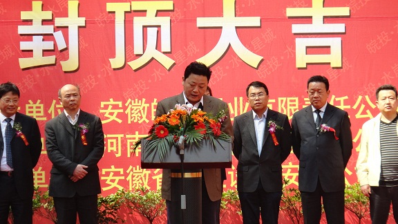 皖投置業(yè)總經(jīng)理耿文女士在慶典上發(fā)表講話,對我公司全體人員的工作給予了充分的肯定,并表示皖投水岸星城一期三標段工程的順利封頂,奠定了皖投置業(yè)與省安裝公司成為長期戰(zhàn)略合作伙伴的基礎。